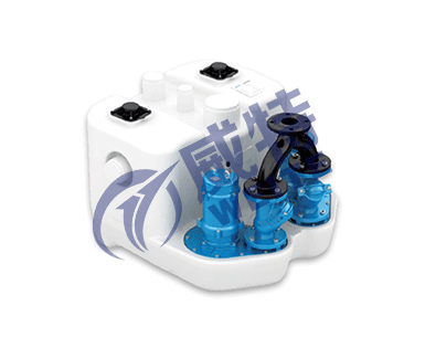 该款双泵泵站单元用于需要第二泵的附加安全性的应用场所,大型商业公卫设计,采用聚乙烯箱体,外置安装污水泵止回阀,使维护更方便快捷,气压液位控制器使运行更稳定。涡流式叶轮结构,可通过直径40mm以内的固体及纤维,全密闭结构尤其适用与含有粪便的生活 污水及厨房隔油设备的排出废水的提升输送。